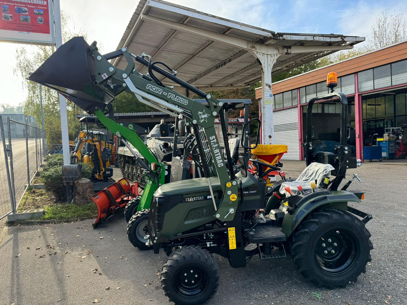Cena bez 19% VAT i z oponami z kolcami, ładowaczem czołowym z łopatą - TERAZ LEASING/PRZEDMIOT SPECJALNEJ OFERTY - - ZA 199 EUR NETTO ZA MIESIĄC z kaucją 0 EUR - Niezależnie od tego, czy chodzi o prace w winnicy, w stadninie koni, na podwórzu, w stajni, wyrzucanie obornika, wożenie bel, pielęgnację zieleni, obróbkę drewna. STARTRAC 263 jest przystosowany do wszystkich zadań Dokumenty homologacyjne: - W tym dokumenty COC - W tym potwierdzenie VIN - W tym potwierdzenie TÜV Opcjonalne opony: Startrac 263: - Glebogryzarka polowa €11,750 brutto - Opony przemysłowe €12,450 brutto - Opony do darni €12,450 brutto - Opony radialne €12,150 brutto - Galaxy Garden Pro €12,150 brutto Startrac 263 z ładowaczem czołowym wraz z łyżką: - Glebogryzarka 15 950 € brutto - Opony przemysłowe 16 650 € brutto - Opony do darni 16 650 € brutto - Opony radialne 16 350 € brutto - Galaxy Garden Pro 16 350 € brutto Dane ładowacza czołowego: - Ogromna maksymalna SIŁA UDŹWIGU 500 Kg - Prowadnica paralelna - Odłączana - 3 obwody sterowania - Pozycja pływająca - Sterowanie joystickiem Dostępne są oczywiście również różne przystawki: - Końcówka krokodyla, widły do palet, kolce do bel i wiele innych. Dane techniczne Silnik: - 3-cylindrowy silnik wysokoprężny Mitsubishi o pojemności 1 318 cm3 - Moc silnika UN EC 120 18,2 kW (24,8 KM) - Poziom emisji spalin 5 - Zbiornik paliwa 24 litry Przekładnia: - 9V/3R - maks. prędkość 24 km/h (w zależności od opon) - blokada mechanizmu różnicowego Napęd na wszystkie koła: - wybierany napęd na wszystkie koła Komfort: - przednie reflektory - 1 x tylne światło robocze - przestronna platforma kierowcy - hydrauliczne wspomaganie kierownicy - regulowany fotel kierowcy - uchwyt na kubek - gniazdo 12 V - uchwyt na telefon komórkowy - skrzynka narzędziowa WOM: - Tylny WOM o prędkości 540 i 540E 1/min Układ hydrauliczny: - Objętość tłoczenia hydrauliki roboczej 20 l/min - Tylny punkt obrotu kat.1 - Siła podnoszenia na dolnym końcu łącznika 800 kg - 4 przyłącza hydrauliczne z tyłu Dyszel: - Standard - Dopuszczalne obciążenie dyszla: 250 kg - Dopuszczalne obciążenie przyczepy bez hamulca: 1.500 kg - Dopuszczalne obciążenie przyczepy z hamulcem: 2.000 kg Wymiary: - Długość całkowita: 2,677 mm - Wysokość całkowita (w zależności od opon): 2.192 mm - rozstaw osi: 1.550 mm - masa własna (w zależności od wyposażenia): 920-1.067 kg - prześwit (w zależności od opon): 310 mm - maksymalne obciążenie osi przedniej (w zależności od opon): 630 kg - maksymalne obciążenie osi tylnej (w zależności od opon): 1 170 kg - dopuszczalna masa całkowita (w zależności od opon): 1800 kg Chętnie zaoferujemy możliwość obejrzenia i jazdy próbnej po wcześniejszym umówieniu się z nami telefonicznie. Nasze usługi w skrócie: - Duży wybór towarów bezpośrednio na miejscu - Pomoc przy załadunku i możliwość transportu bezpośredniego - Dostawa Państwa towarów na terenie całej Europy - Zamawianie akcesoriów i części zamiennych - Przebudowa wielu pojazdów zgodnie z przepisami ruchu drogowego (StVo) - Przyjazne i kompetentne doradztwo Chętnie przedstawimy Państwu ofertę finansowania, leasingu lub sprzedaży ratalnej! Zarówno dla klientów komercyjnych, jak i prywatnych. Warunki 12-120 miesięcy na najlepszych warunkach. Chętnie przedstawimy niewiążącą ofertę. Oferujemy również atrakcyjne warunki zakupu używanych pojazdów i maszyn, niezależnie od tego, czy są to ciągniki, koparki, quady czy ładowarki kołowe. Wszystkie informacje bez gwarancji, z zastrzeżeniem błędów i wcześniejszej sprzedaży Przetłumaczono z DeepL.com (wersja darmowa)